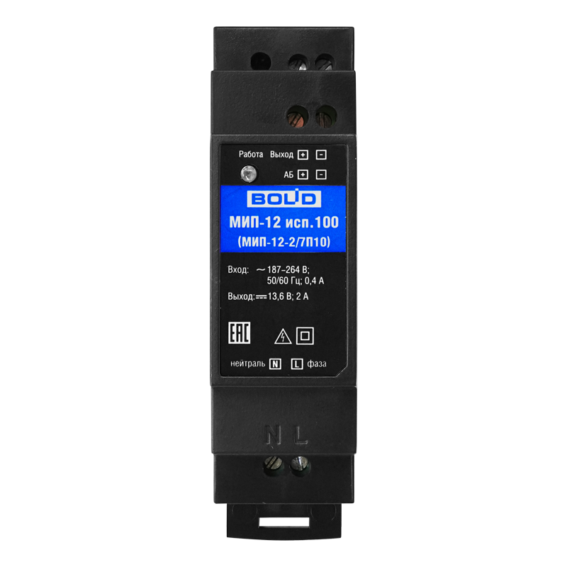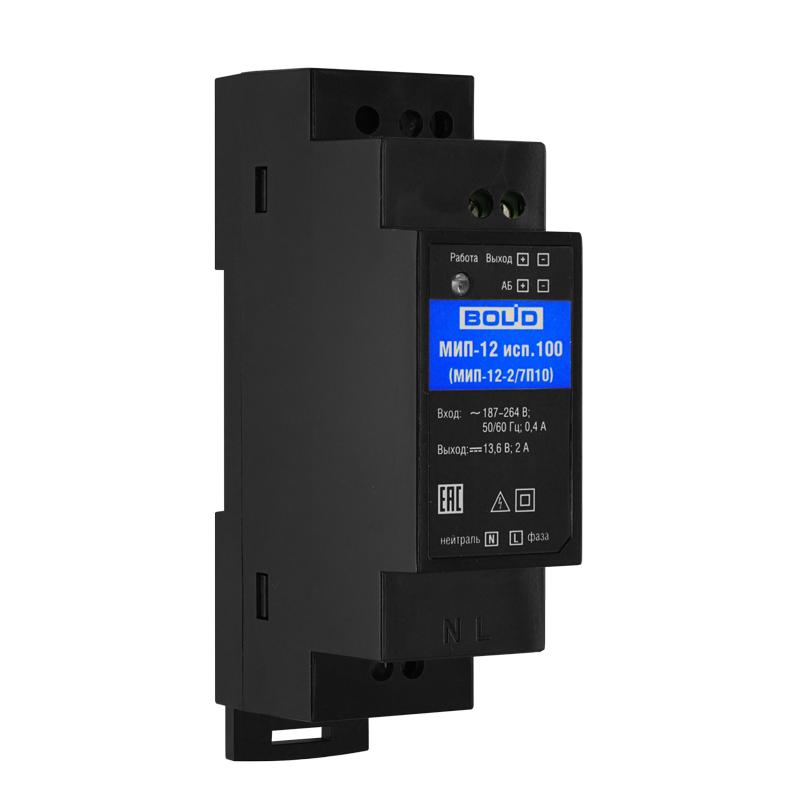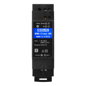 Резервированный источник питания; U-вх.187…264 В, U-вых.13.6±2% В, I-max.2 А, под внешний АКБ 12 В 4.5…12 А·ч; световая индикация, электронная защита от короткого замыкания, защита аккумулятора от глубокого разряда; IP20, t-раб.-20…+45°С, 27×95×56 мм. Крепление на DIN-рейку.