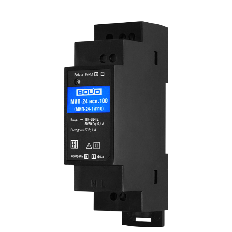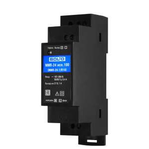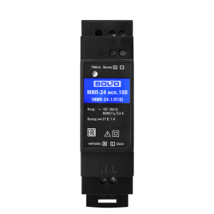 Резервированный источник питания; U-вх.187…264 В, U-вых.27±2% В, I-max.2.5 А, под два внешних АКБ 12 В 4.5…12 А·ч; световая индикация, электронная защита от короткого замыкания, защита аккумулятора от глубокого разряда; IP20, t-раб.-20…+45°С, 89.5×95×56 мм. Крепление на DIN-рейку.
