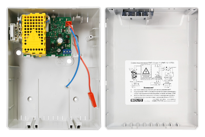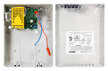Резервированный источник питания; U-вх.150…250 В, U-вых.13…14.2 В, I-ном.1 А, I-max.1,5 А (до 10 минут), под АКБ 12 В 7 А·ч; световая индикация режимов работы, диагностический выход "Переход на резервное питание" типа "открытый коллектор", защита от короткого замыкания, защита аккумулятора от глубокого разряда; IP30, t-раб.-10…+40°С, 165х211х90 мм