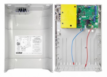 Резервированный источник питания; U-вх.150…250 В, U-вых.13…14.2 В, I-ном.3 А, I-max.4 А (до 10 минут), под АКБ 12 В 17 А·ч; световая и звуковая индикация режимов работы, три оптоэлектронных диагностических выхода, защита от короткого замыкания, защита аккумулятора от глубокого разряда; IP30, t-раб.-10…+40°С, 230х320х110 мм. Возможность подключения бокса на два аккумулятора 12 В 17 А·ч (Бокс-12 исп.01)