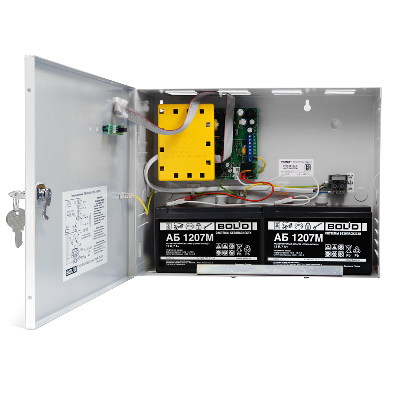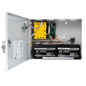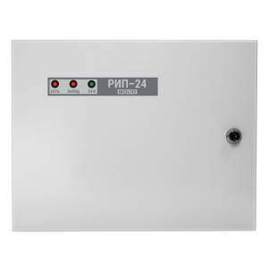 Резервированный источник питания; U-вх.187…250 В, U-вых.25.8…28.2 В, I-ном.3 А, I-max.4 А (до 2 минут), под два АКБ 12 В 7 А·ч; световая и звуковая индикация режимов работы, диагностический выход "Переход на резервное питание" типа "открытый коллектор", защита от короткого замыкания, защита аккумулятора от глубокого разряда, t-раб.-10…+40°C, 340х270х100 мм. Возможность подключения бокса на два аккумулятора 12 В 17 А·ч (Бокс-24 исп.0)