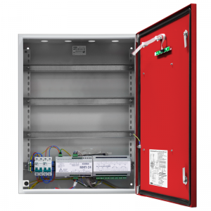 Шкаф для монтажа средств пожарной автоматики с креплением на DIN-рейку; 2 ввода питания; U-вх.150…253 В, U-вых.27.2±6 В, I-ном.2 А, I-макс.2.2 А, под два АКБ 12 В 17 А·ч; встроенный блок коммутации БК-24-RS485 (две изолированные линии интерфейса RS-485 для подключения к компонентам ППКП и ППКУП расположенным за пределами ШПС, одна линия RS-485 для подключения компонентов ППКП внутри ШПС; 7 выходов для подключения к приборам внутреннего интерфейса RS-485; 7 выходных каналов 24 В с индивидуальной защитой); IP54, t-раб.-10…+40°С, 650х500х220 мм. Красного цвета. Возможность установки монтажного комплекта МК-1.