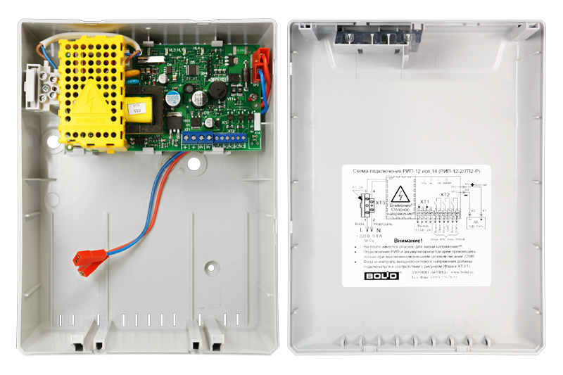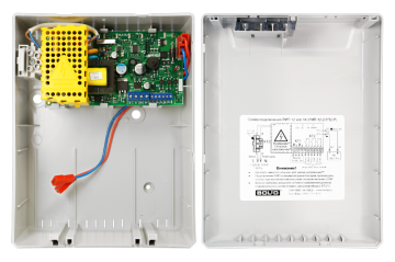 Резервированный источник питания; U-вх.150…250 В, U-вых.13…14.2 В, I-ном.2 А, I-max.2,5 А (до 10 минут), под АКБ 12 В 7 А·ч; световая и звуковая индикация режимов работы, три оптоэлектронных диагностических выхода, защита от короткого замыкания, защита аккумулятора от глубокого разряда; IP30, t-раб.-10…+40°С, 165х211х90 мм