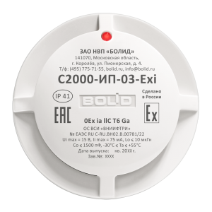 Извещатель пожарный тепловой максимально-дифференциальный адресно-аналоговый взрывозащищённый 0Ex ia IIC T6 Ga; для работы «С2000-КДЛ», «С2000-КДЛ-2И», «С2000-КДЛ-2И исп.01», «С2000-КДЛ-С» через «С2000-Спектрон-ИБ» или «С2000-Барьер-Exi»; t-сраб.+54°С; U-пит.8…11 В, I-потр.600 мкА; IP41, t-раб.-30…+55°С, 100х47 мм