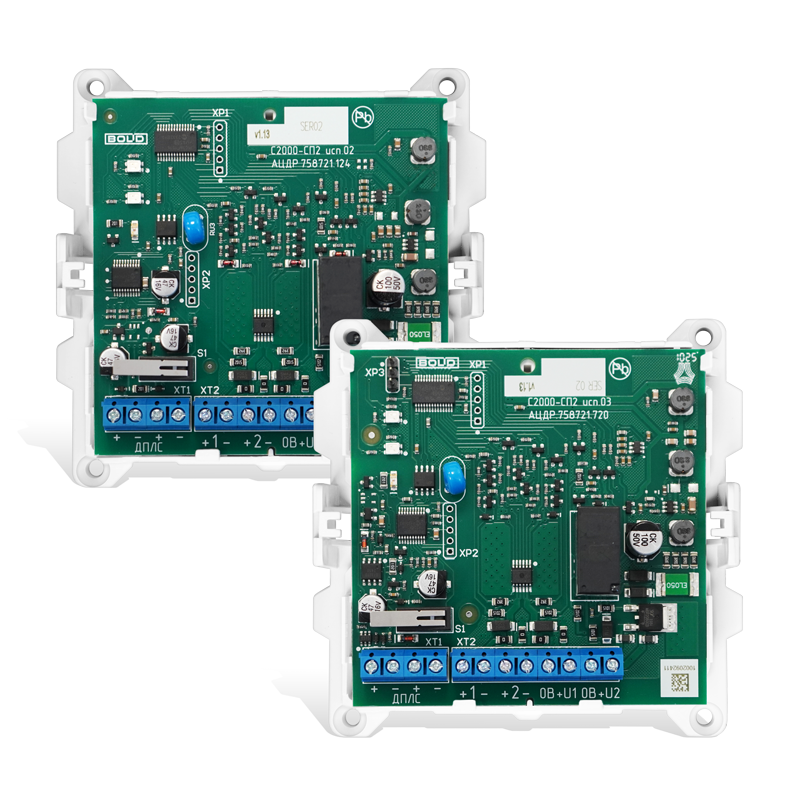 Блок сигнально-пусковой адресный для С2000-КДЛ, 2 контр.выхода (U-вых.12...24В/3А), U-пит.10,2...28,4В, I-потр.60 мА, IP40, t-раб.-30...+55°С, габ.размер 102×107×39 мм. Встроенный изолятор короткого замыкания.