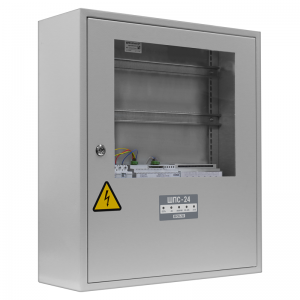 Шкаф для монтажа средств пожарной автоматики с креплением на DIN-рейку; 2 ввода питания; U-вх.180…265 В, U-вых.27.2±6 В, I-ном.3 А, I-макс.3.5 А, под два АКБ 12 В 26/40 А·ч; встроенный блок коммутации БК-24-RS485 (две изолированные линии интерфейса RS-485 для подключения к компонентам ППКП и ППКУП расположенным за пределами ШПС, одна линия RS-485 для подключения компонентов ППКП внутри ШПС; 7 выходов для подключения к приборам внутреннего интерфейса RS-485 и 7 выходов питания; IP41, t-раб.-10…+40°С, 700×600×225 мм. Дверь с прозрачным стеклом.